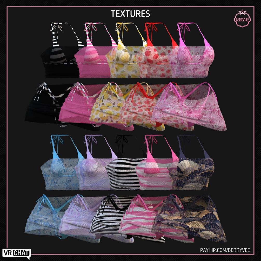 - ✅ All Assets and Avatars sold by berryvee must be properly credited and require hyperlinking to either my Gumroad, Payhip or Discord. [e.g. " Via Hair by berryvee " or " Via Hair by berryvee " ]