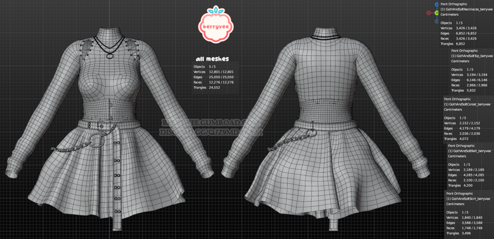 Κ 1 FBX file: 5 meshes = necklaces, top, corset, belt and skirt