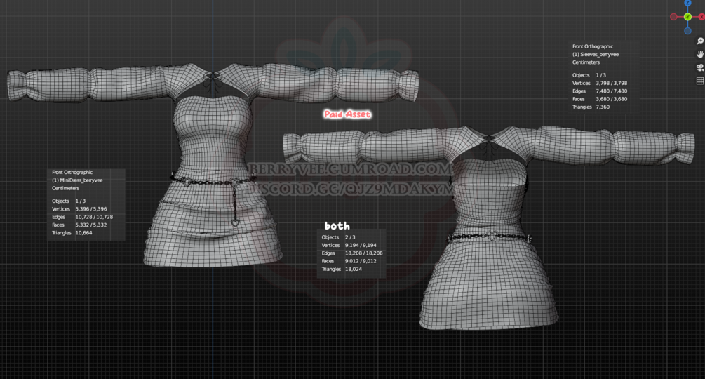 ʚ 1 FBX file: 2 meshes = mini dress and sleeves