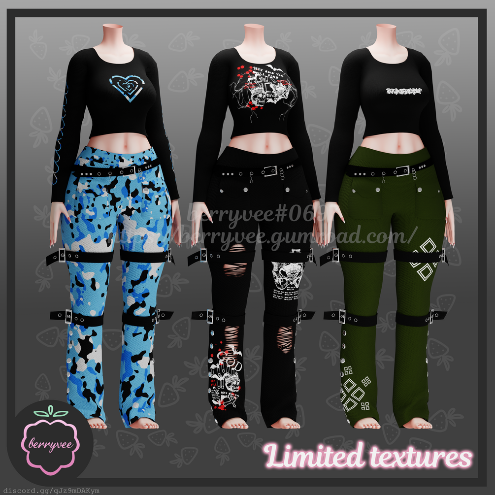 - ✅ All Assets and Avatars sold by berryvee must be properly credited and require hyperlinking to either my Gumroad, Payhip or Discord. [e.g. " Via Hair by berryvee " or " Via Hair by berryvee " ]