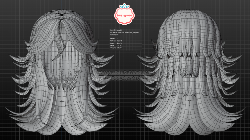 - β All Assets and Avatars sold by berryvee must be properly credited and require hyperlinking to either my Gumroad, Payhip or Discord. [e.g. " Via Hair by berryvee " or " Via Hair by berryvee " ]